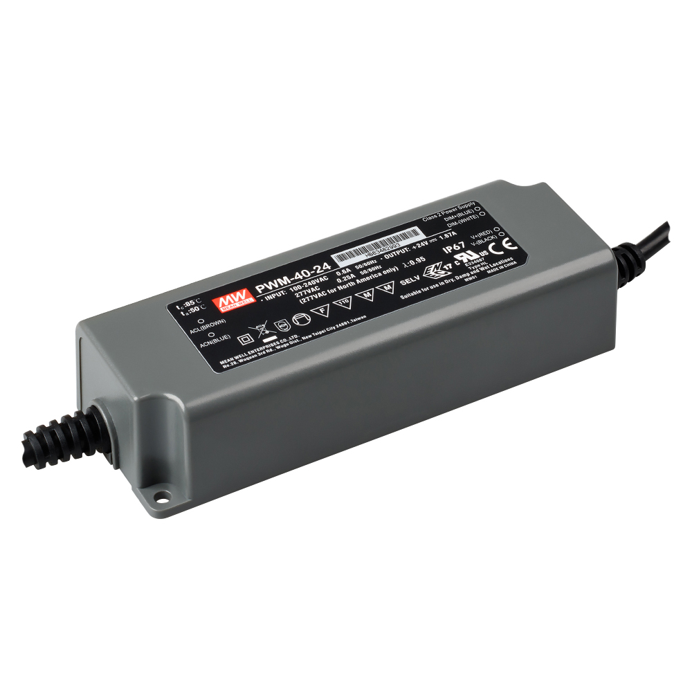 Блок питания PWM-40-24 (24V, 1.67A, 40W, 0-10V, PFC) (MEAN WELL, IP67 Пластик, 5 лет) 021004 в Челябинске