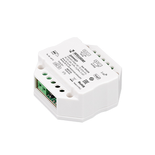 Диммер для управления одноцветными светодиодными DIM лентами (ШИМ). Выполняет функции: включение/выключение, регулировка яркости. Диммер совместим с беспроводной облачной платформой TUYA посредством сети Zigbee (с подключением через конвертер Zigbee - WiFi). Управление доступно со смартфона через приложение INTELLIGENT ARLIGHT или Smart Life. Реализована функция Push-Dim - для управление с помощью возвратных нажимных выключателей. Устройство совместимо с радиочастотными пультами дистанционного управления и настенными панелями управления серии SMART. Возможна привязка до 10 пультов или панелей управления. Рабочее напряжение 12-48В, максимальная нагрузка 9A на канал при напряжении (DC12-24V) и 6А на канал при напряжении (DC36-48V), максимальная мощность для 12-24В - 108-216Вт, для 36-48В - 216-288Вт. Выбор частоты ШИМ (500Hz, 2kHz, 8kHz, 16kHz), а также выбор кривой диммирования (линейная, логарифмическая) производится с помощью DIP-переключателей. В устройстве реализована функция плавного включения/выключения в течение 3с. Доступно управление с помощью голосового помощника Алиса от Яндекс. Диммер подходит для установки в стандартную монтажную коробку. Габаритные размеры составляют 52х52х26 мм.