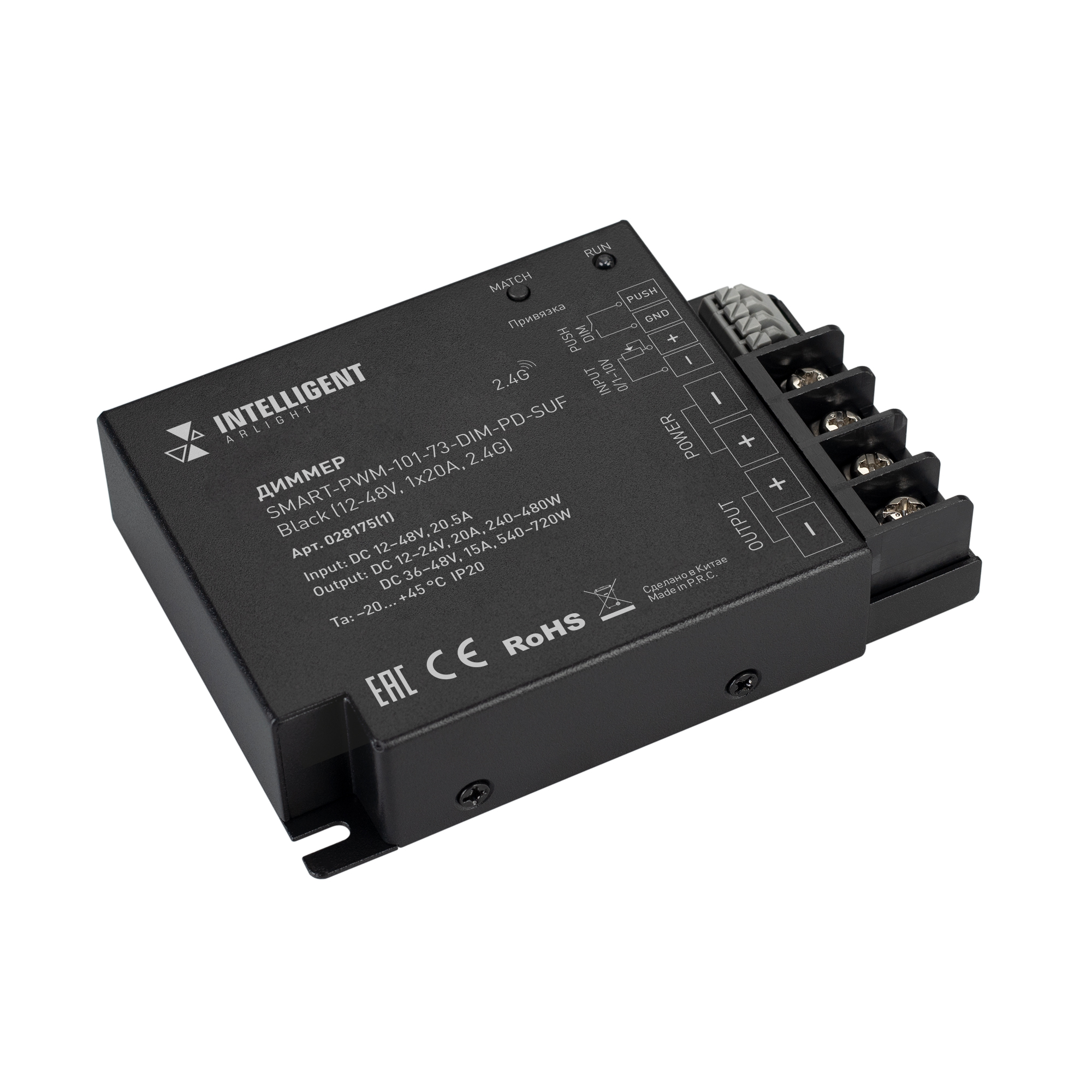 INTELLIGENT ARLIGHT Диммер SMART-PWM-101-73-DIM-PD-SUF Black (12-48V, 1x20A, 2.4G) (IARL, IP20 Металл, 5 лет) 028175(1) в Челябинске