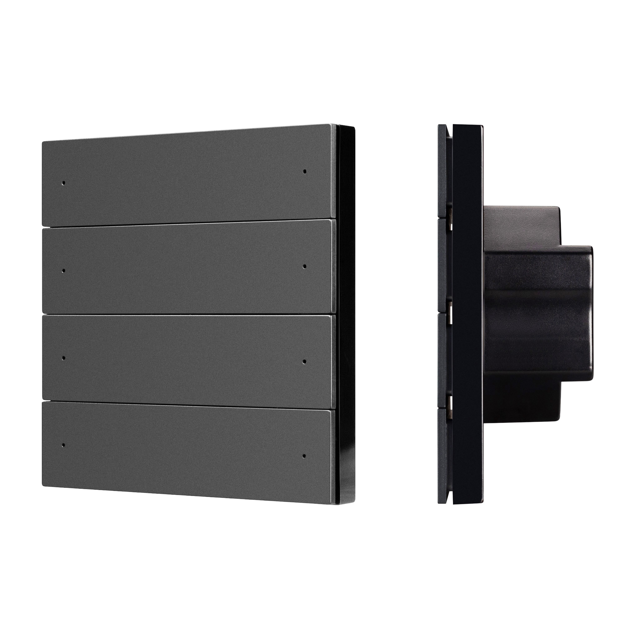 Встраиваемая пластиковая панель черого цвета с кнопочным управлением, предназначенная для работы с контроллерами в системах управления светом DALI-2. Напрямую не управляет исполнительными устройствами. Все команды от панели обрабатываются только мастер-контроллерами DALI. Позволяет программировать 8 кнопок и 8 светодиодных индикатора статусов. Удобное и точное управление при помощи отдельных механических кнопок для каждой функции. Питание от шины DALI. Габариты устройства составляют 86х86х35.5 мм.