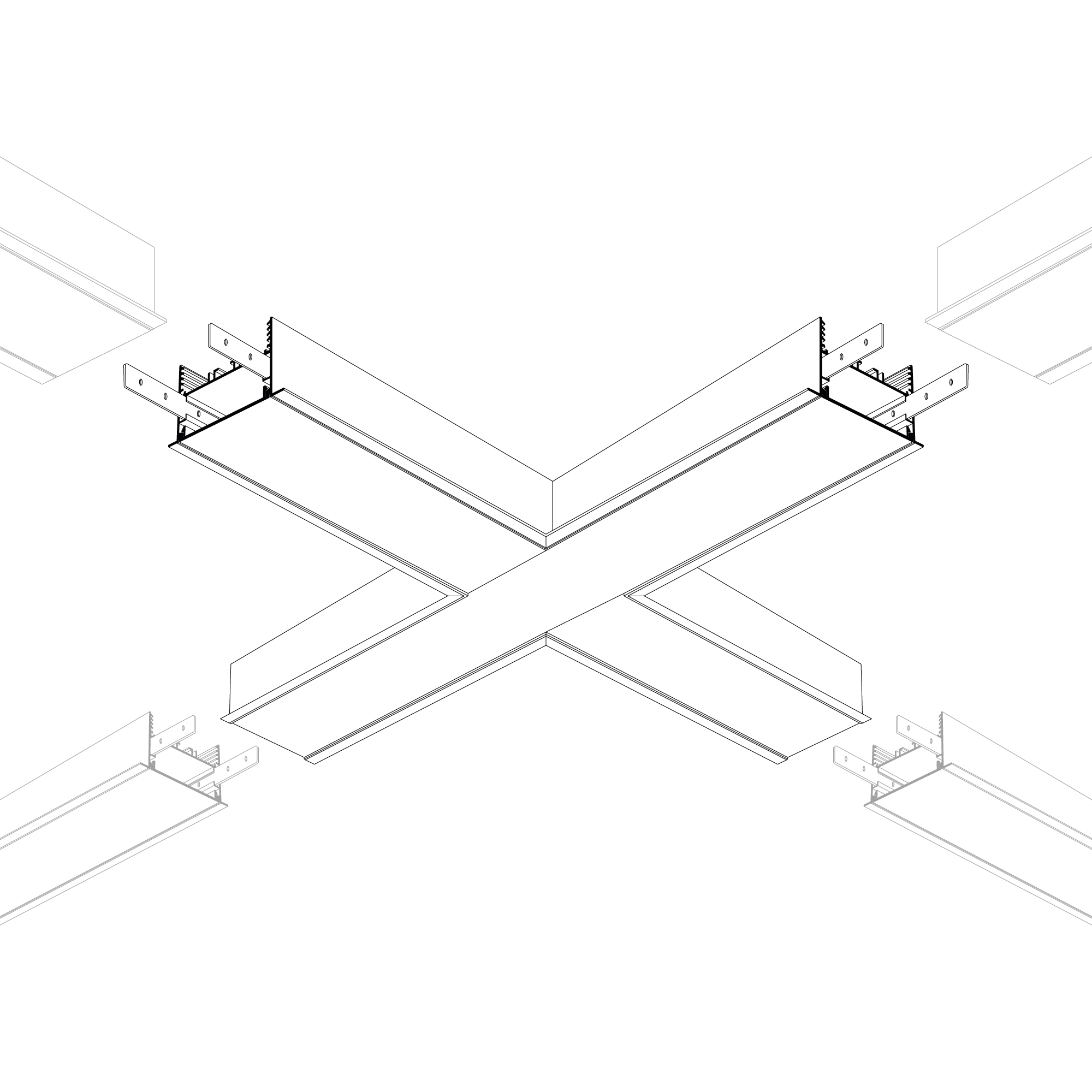 Крестовой угол в сборе для соединения четырех профилей SL-LINIA65-F под прямыми углами 90° в одной плоскости в комплекте с матовым экраном, соединителями и винтами. Экран образует Х-образную фигуру на плоскости. Применятся при изготовлении светильников сложной геометрии. Длина крестовины 400 мм. Цена за комплект.