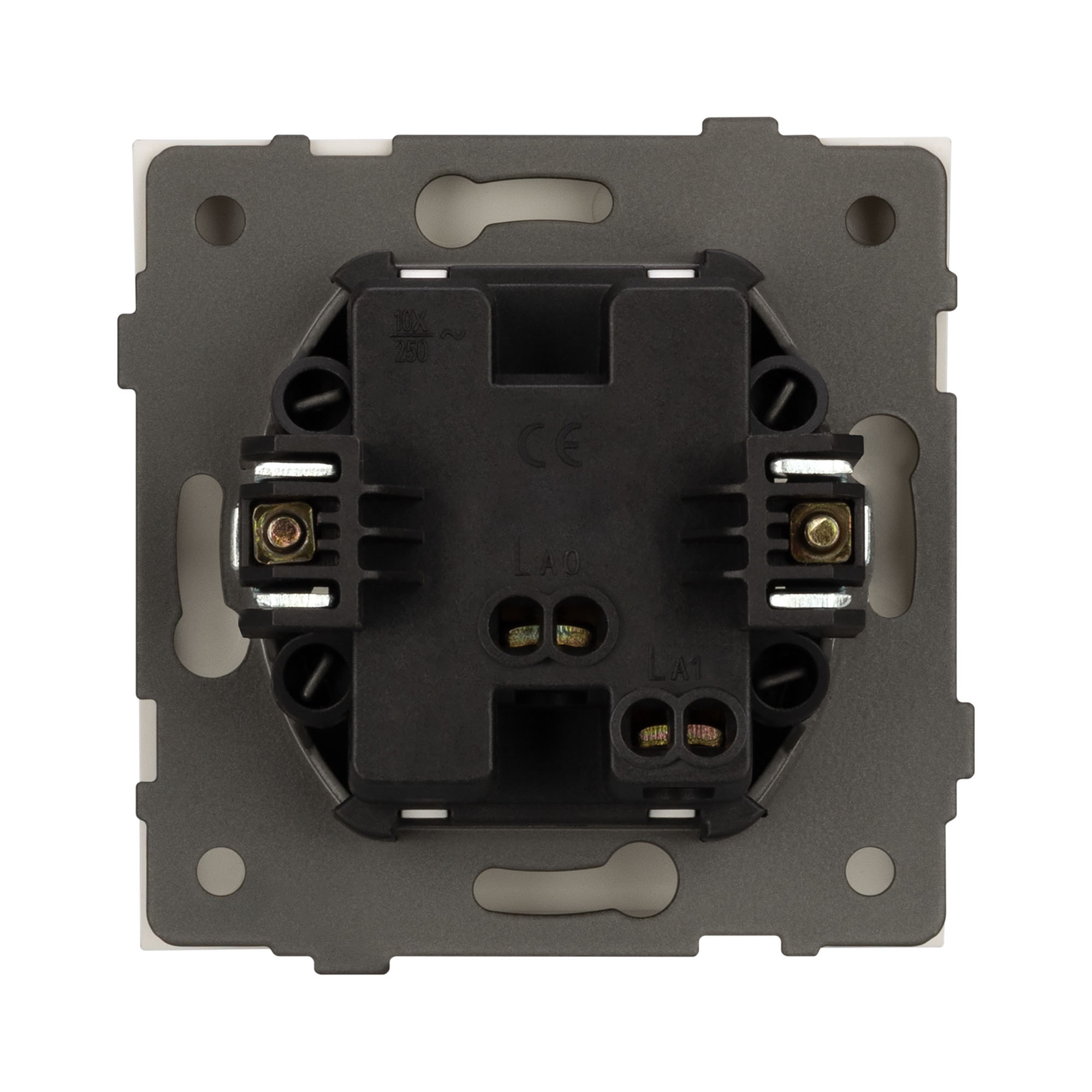 Механизм выключателя света совместим с рамками серии TENDO, создает утонченный минималистичный вид. Скрытый тип монтажа позволяет гармонично встроить в интерьер любого современного дизайн-проекта. Видимая часть механизма выполнена из высококачественного пластика белого цвета и имеет Soft-Touch покрытие, что придает изделию приятные тактильные ощущения и стильный внешний вид. Контактная часть присоединяется при помощи винтовых зажимов, позволяя надежно подсоединить механизм выключателя к питающим элементам. А усиленные распорные лапки двойного захвата надежно фиксируют механизм в установочном подрозетнике круглого сечения диаметром 60мм. Суппорт окрашен порошковой краской и выполнен из металла толщиной 1,5мм, что обеспечивает безопасность и уверенность в установке. На каждой стороне суппорта размещены фиксирующие элементы, позволяющие комбинировать механизмы в системы до 5 шт как горизонтально, так и вертикально.