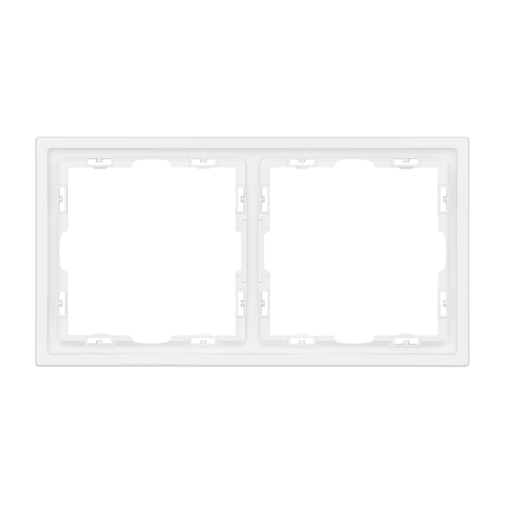 Рамка пластиковая на 2 поста, под встраиваемый механизм. Цвет - белый, с Soft-Touch покрытием. Среднего уровня герметичности IP20. Ориентация монтажа горизонтальная.
