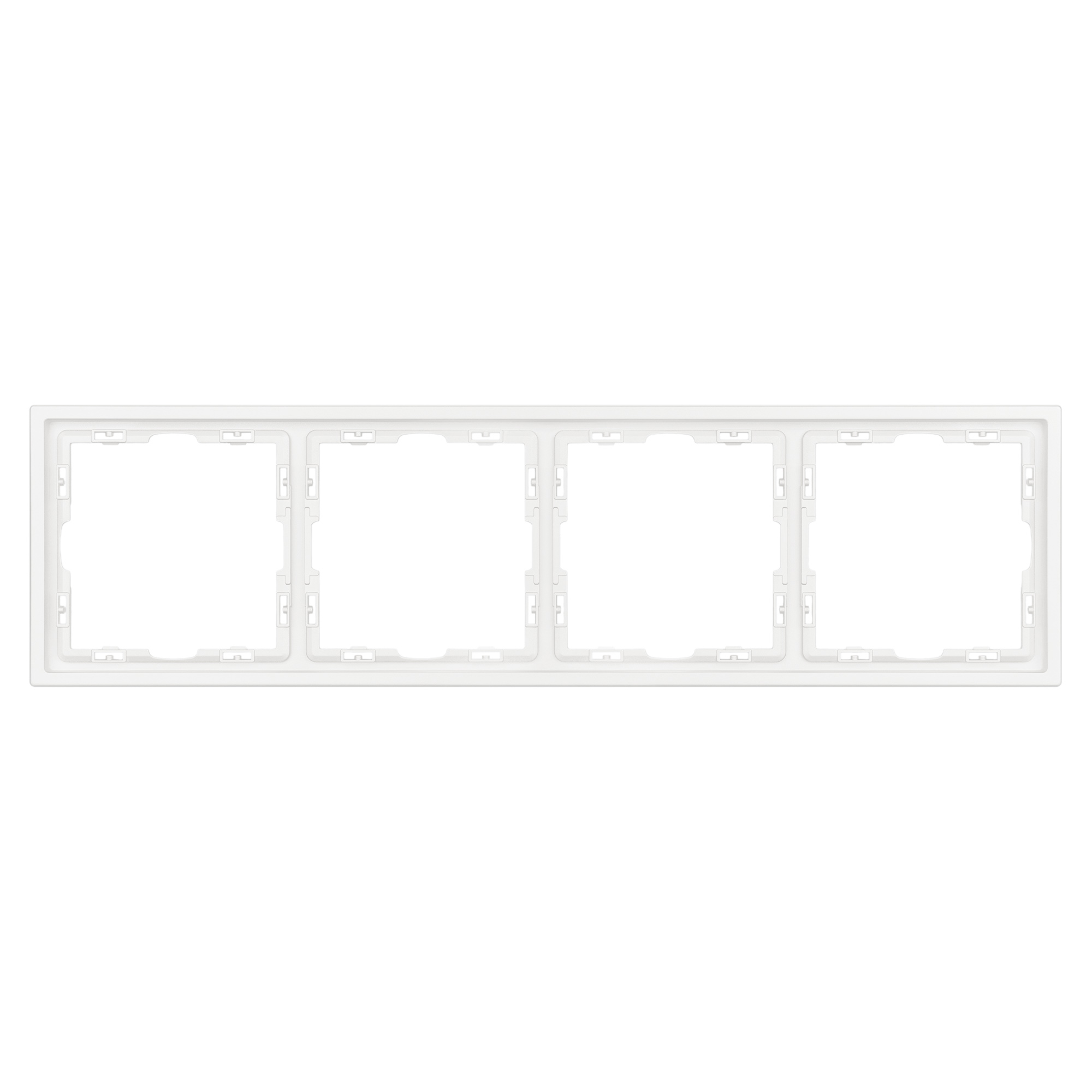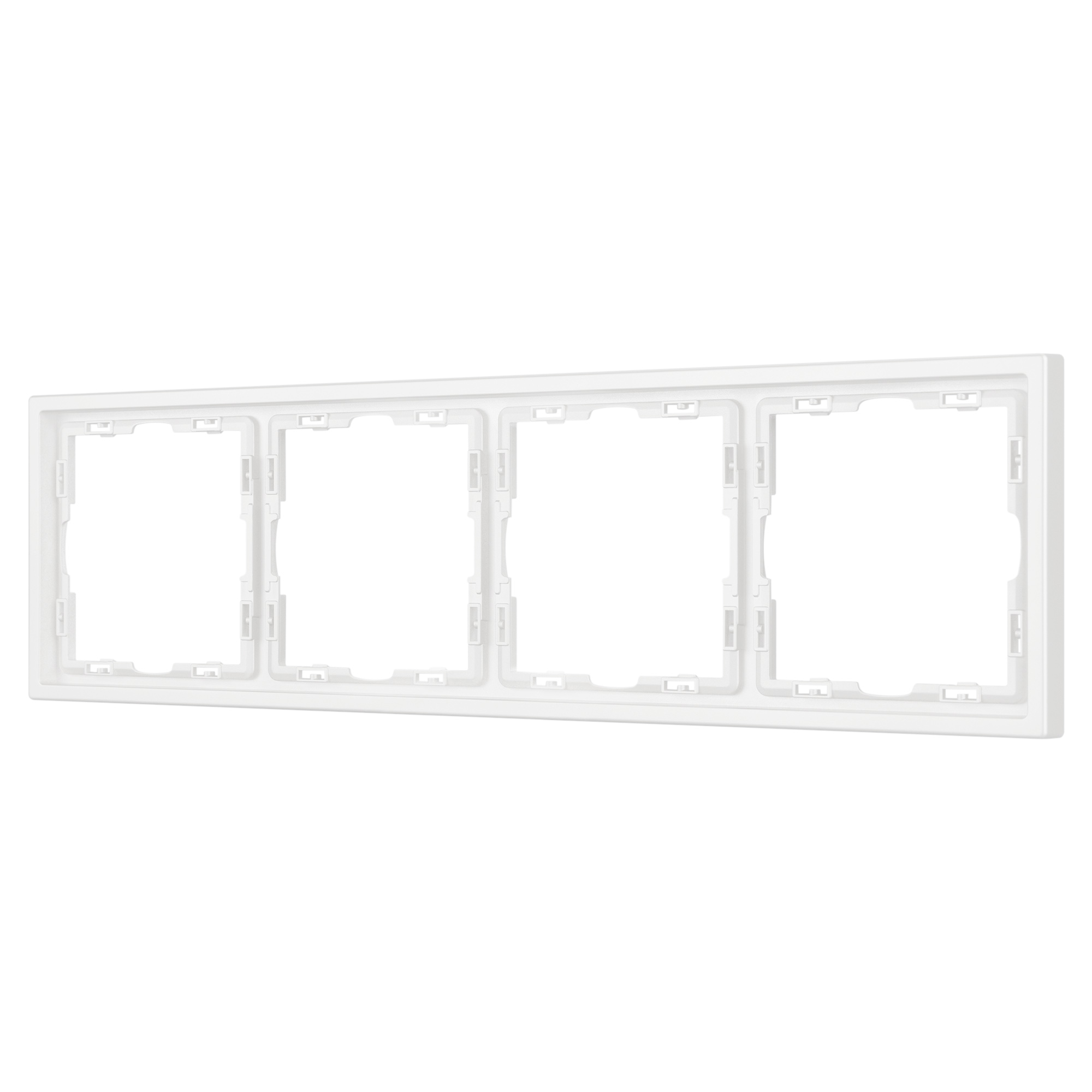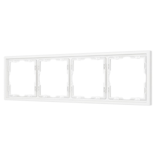 Рамка пластиковая на 4 поста, под встраиваемый механизм. Цвет - белый, с Soft-Touch покрытием. Среднего уровня герметичности IP20. Ориентация монтажа горизонтальная.