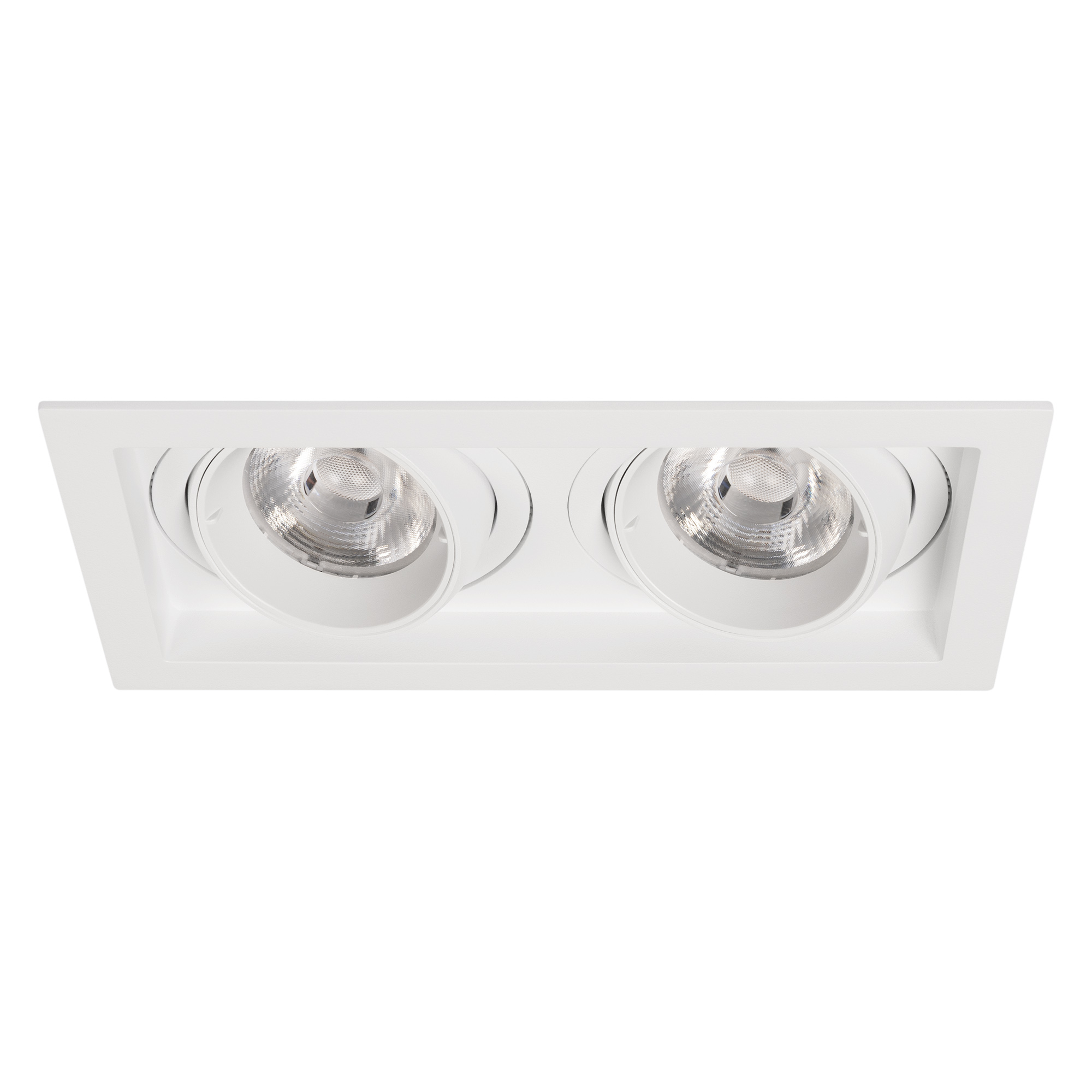 Встраиваемый карданный светильник. Мощность 2х20 Вт, св. поток 4264 лм, 106 лм/Вт, дневной 3000 K, CRI>92, угол 40°, напряжение питания 230 В. Белый корпус из алюминия, черная вставка, степень защиты IP20. Размер: длина 210 мм, ширина 117 мм, высота 105 мм. Монтаж встраиваемый, установочное отверстие: длина 190 мм, ширина 95 мм. Драйвер 24-42 В, 500 мА, пульсация <2%.