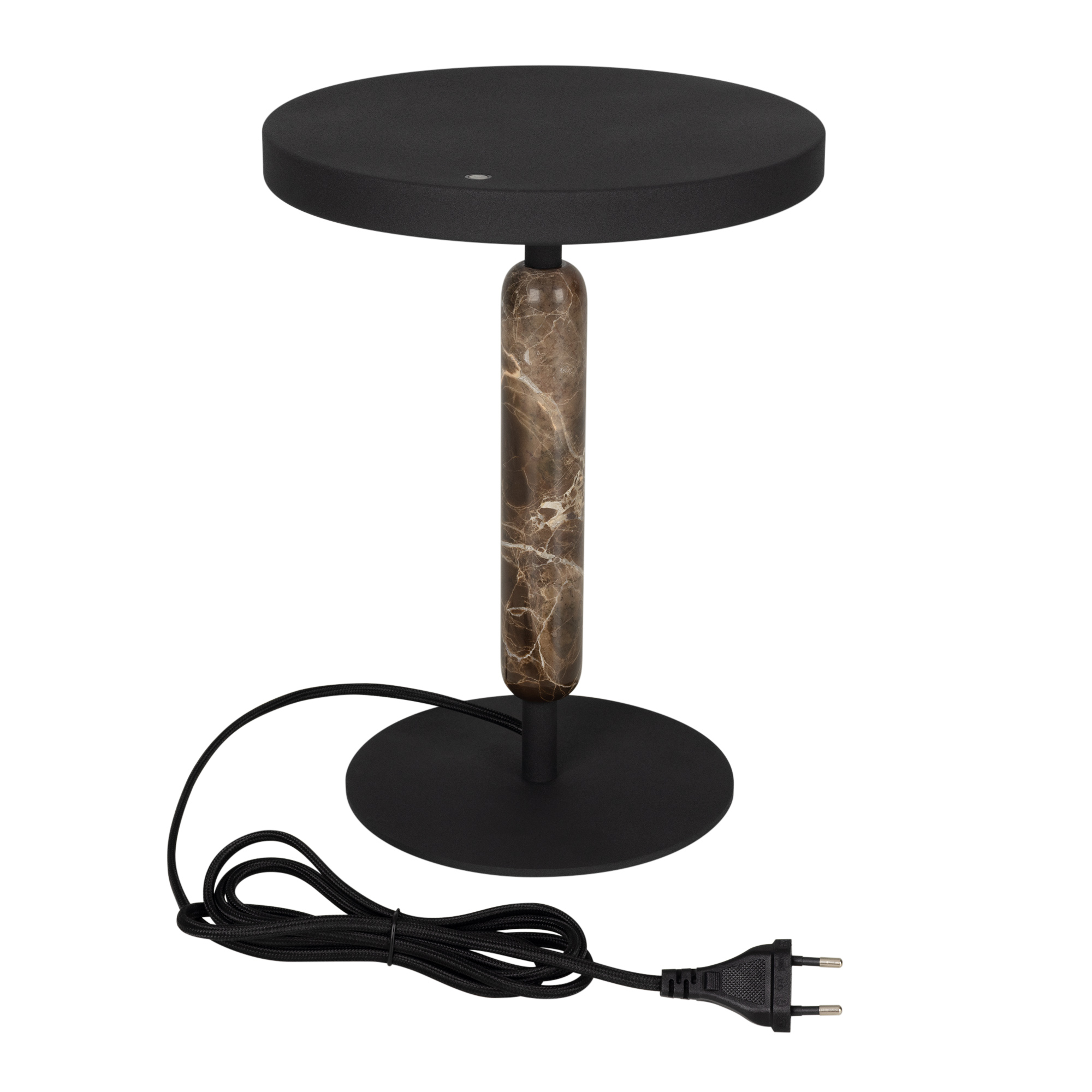 Настольный светильник ALYSS мощностью 5 Вт, с изменяемой цветовой температурой 2700/3200/4000К предназначен для местного декоративного освещения в жилых или коммерческих помещениях. Светильник с широким углом излучения 110 градусов и декоративной вставкой из натурального мрамора оригинально дополнит интерьеры кухни-гостиной или зала кафе, ресторанов. Индекс CRI>92 отвечает за отличное восприятие и передачу цветовых оттенков. Низкая пульсация обеспечивает комфортное освещение без мерцания. Сенсорная кнопка на плафоне позволяет настроить желаемую яркость и цветовую температуру. Пылевлагозащита на уровне IP20 позволяет применять модель внутри помещений, где нет контакта с водой или другими жидкостями. За счет сетевого адаптера, входящего в комплект, светильник быстро подключается к сети 230В.